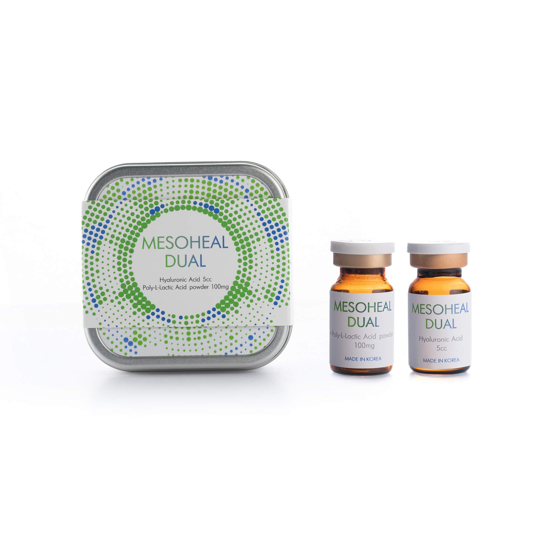 MESOHEAL® DUAL is a double-acting skin booster which contains unstabilized highly-purified hyaluronic acid and lyophilized polylactide powder (PLA).